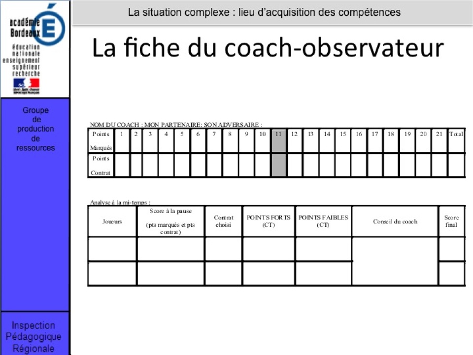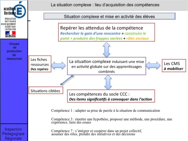 Ils alternent donc une situation complexe et des situations plus ciblées, apprenant et réinvestissant ces apprentissages dans le jeu construit. La proximité de ces phases est une des clefs de l'intégration et de la progression.