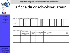 insertion de grilles d'observation, d'évaluation, tableau conseil (contrats) , consignes de fonctionnement.